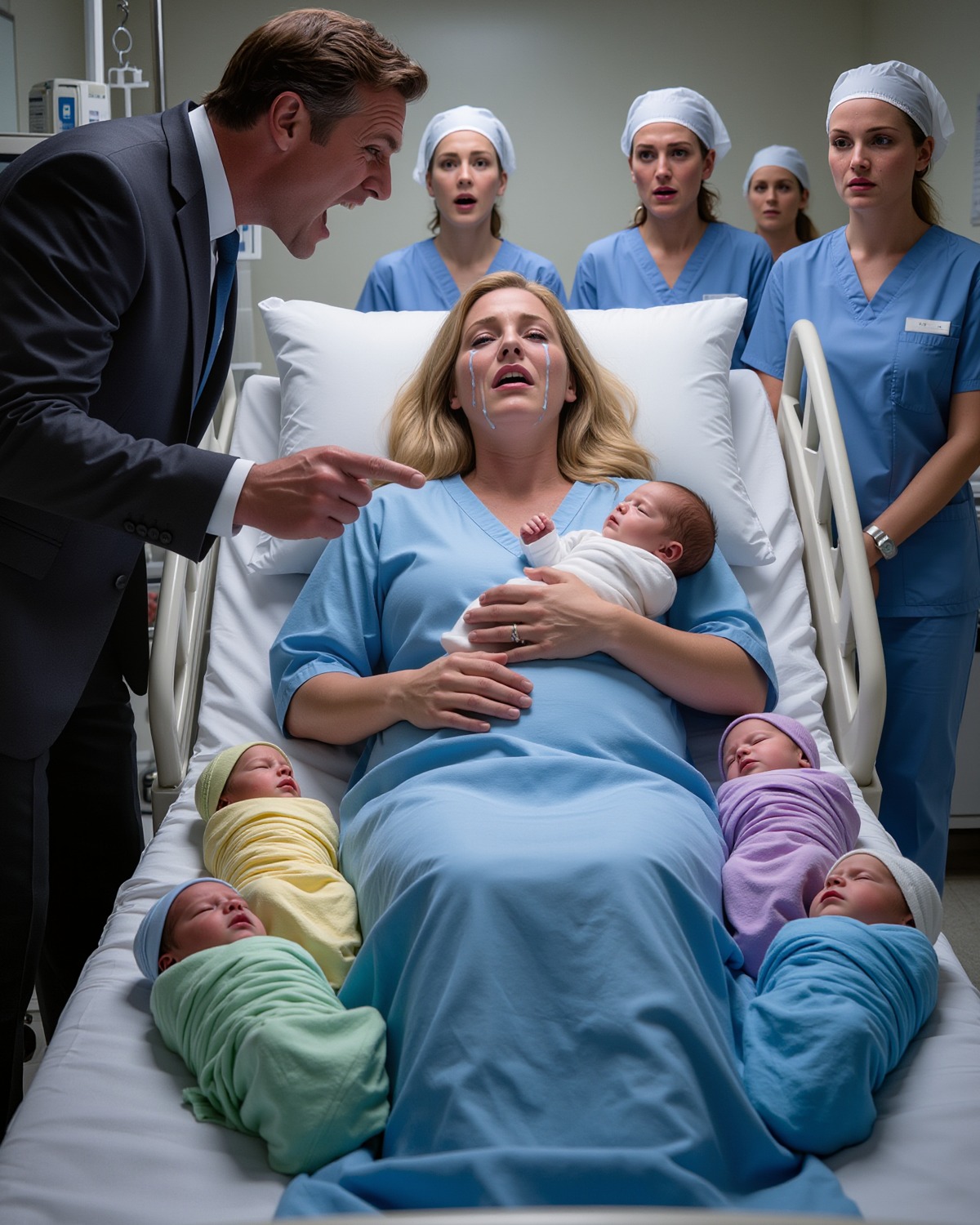Anna yacía exhausta, temblando tras horas de parto, con la piel húmeda de sudor. En sus brazos descansaban cinco pequeños recién nacidos, cada uno envuelto en suaves mantas de color pastel. Los trillizos habrían asombrado al personal del hospital, pero ¿quintillizos? Eso era más que raro. Debería haber sido un milagro. Sin embargo, nadie en la habitación los miró con asombro.