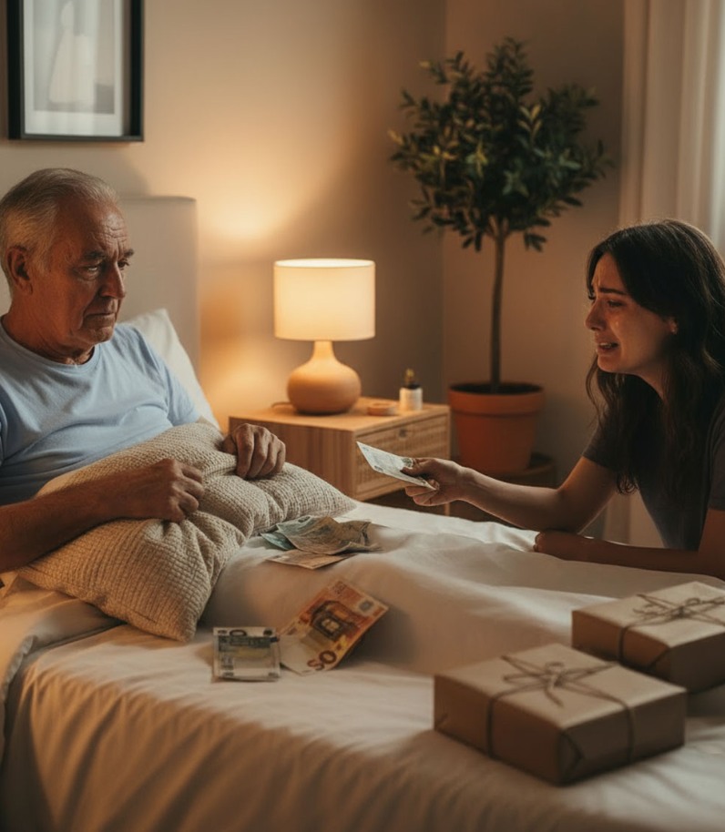 Mi suegro no tenía pensión. Lo cuidé con todo mi corazón durante 12 años. Con su último aliento, me entregó una almohada rota y dijo: «Para María». Cuando la abrí, lloré sin parar…